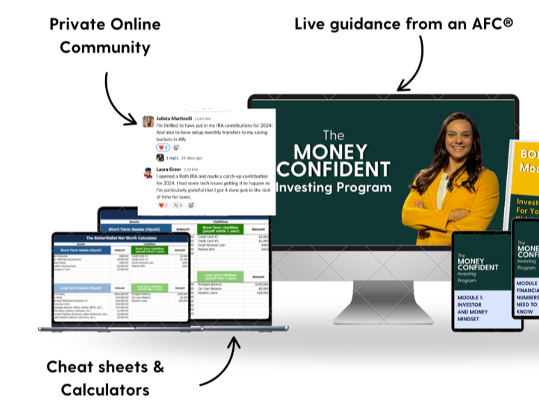 A virtual small group program, designed specifically for women in their 30’s to 50’s, that will teach you how to invest in the stock market so that you can retire comfortably and design a life you love.