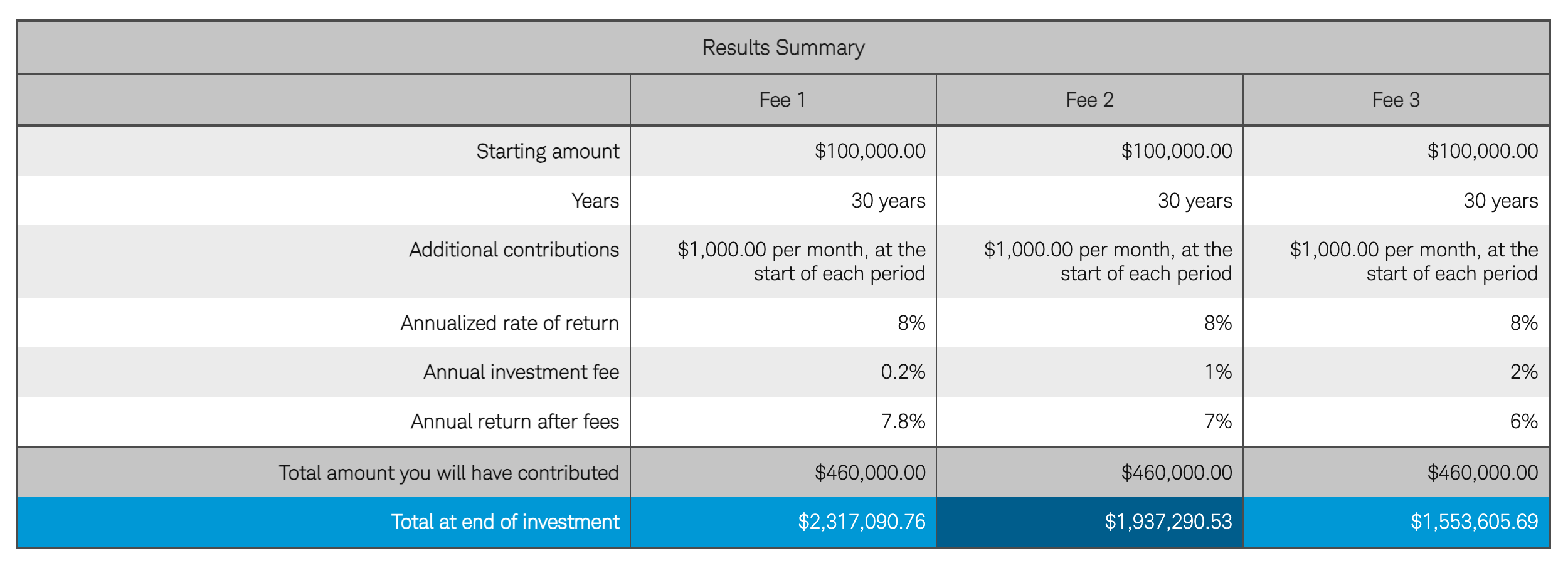 If I kept paying 2% in fees I would end up paying close to $700,000 in fees over a 30 year period!